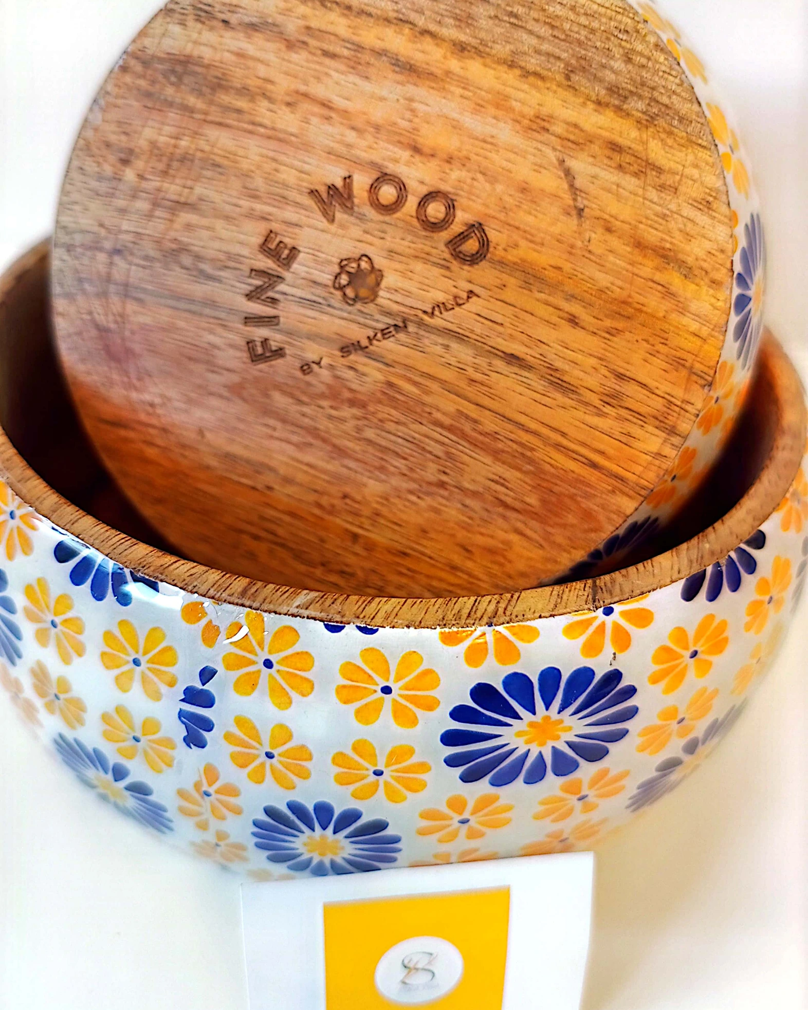 Artistic Printed Wooden Bowls – Smooth Yellow