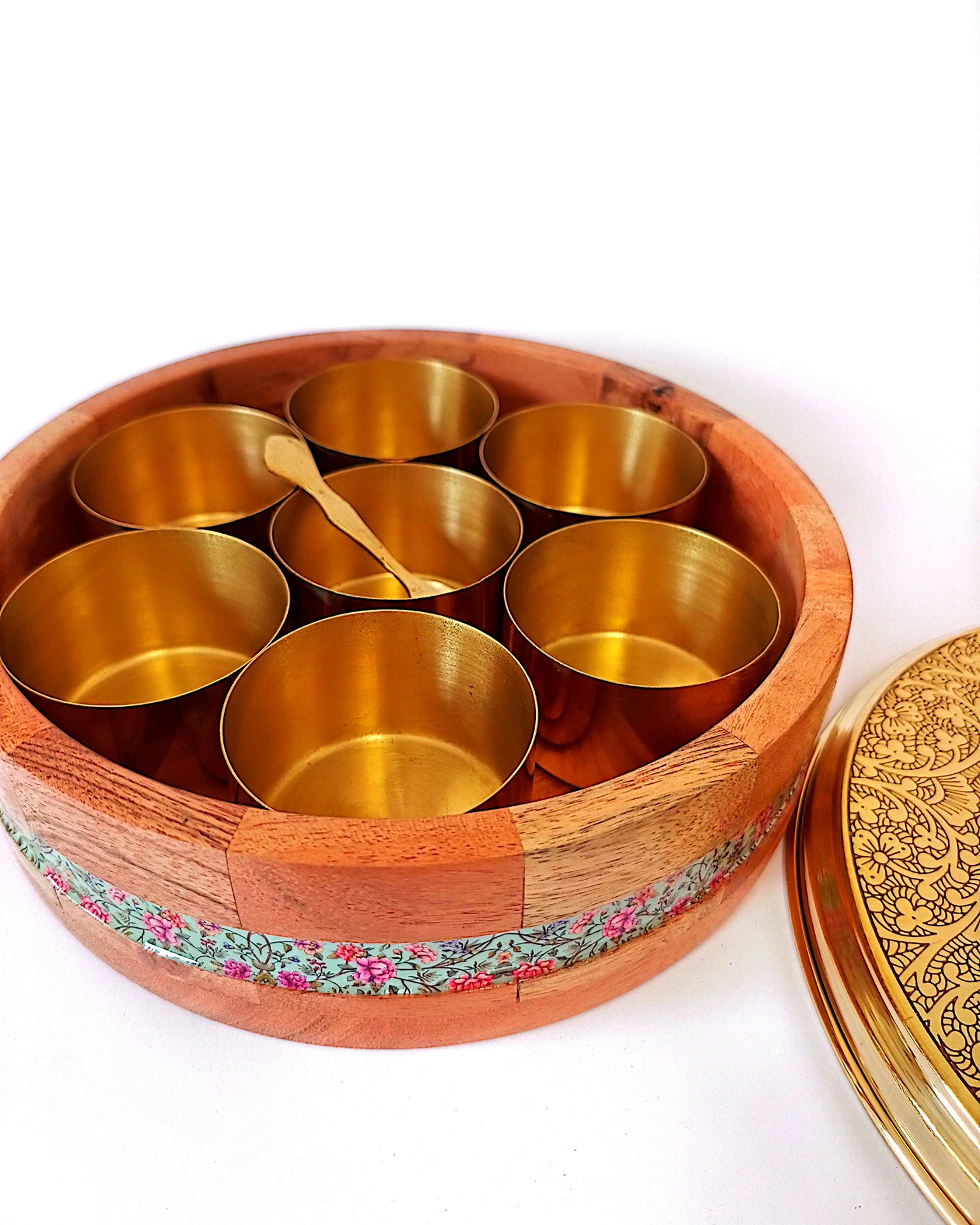 Authentic Spice Masala Box with Brass Lid & seven containers – For every Kitchen