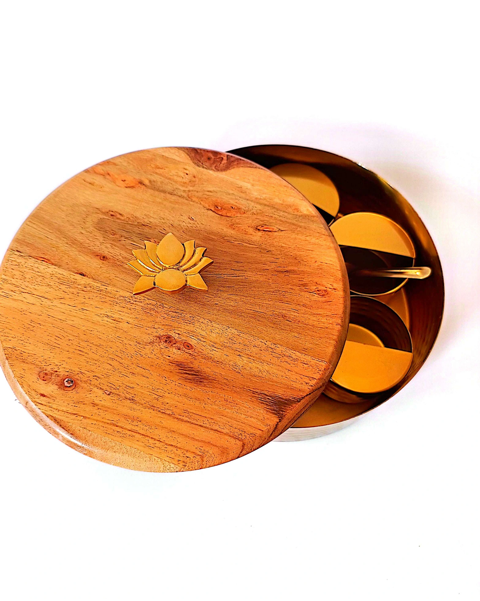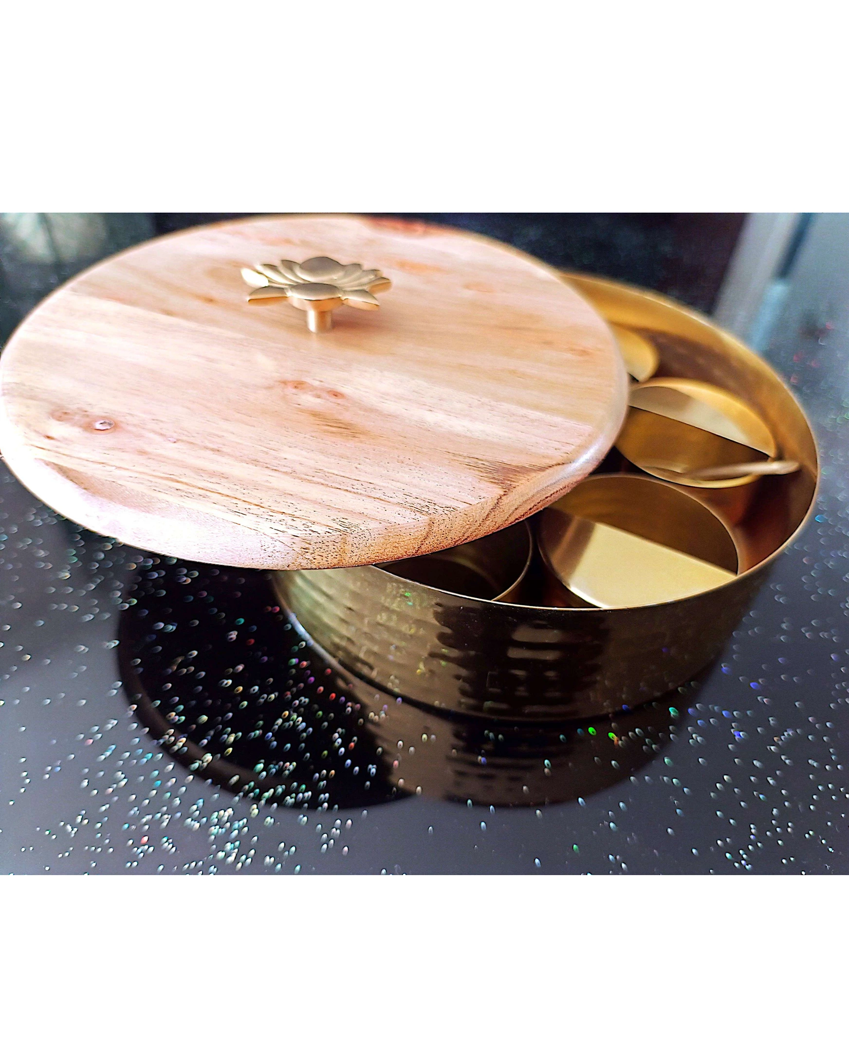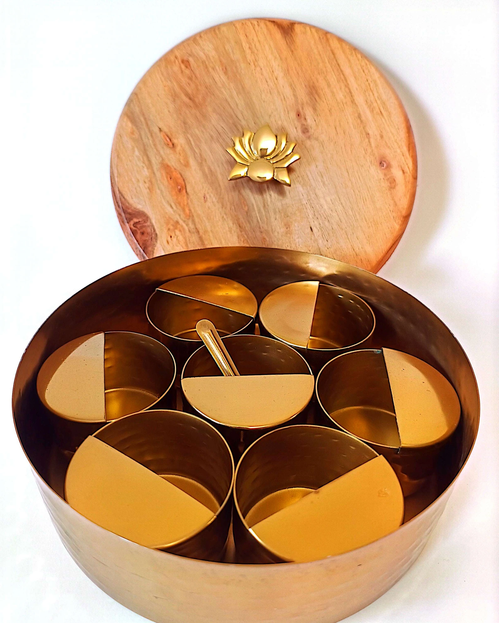 Authentic Spice Masala Box with Wooden Lotus Lid