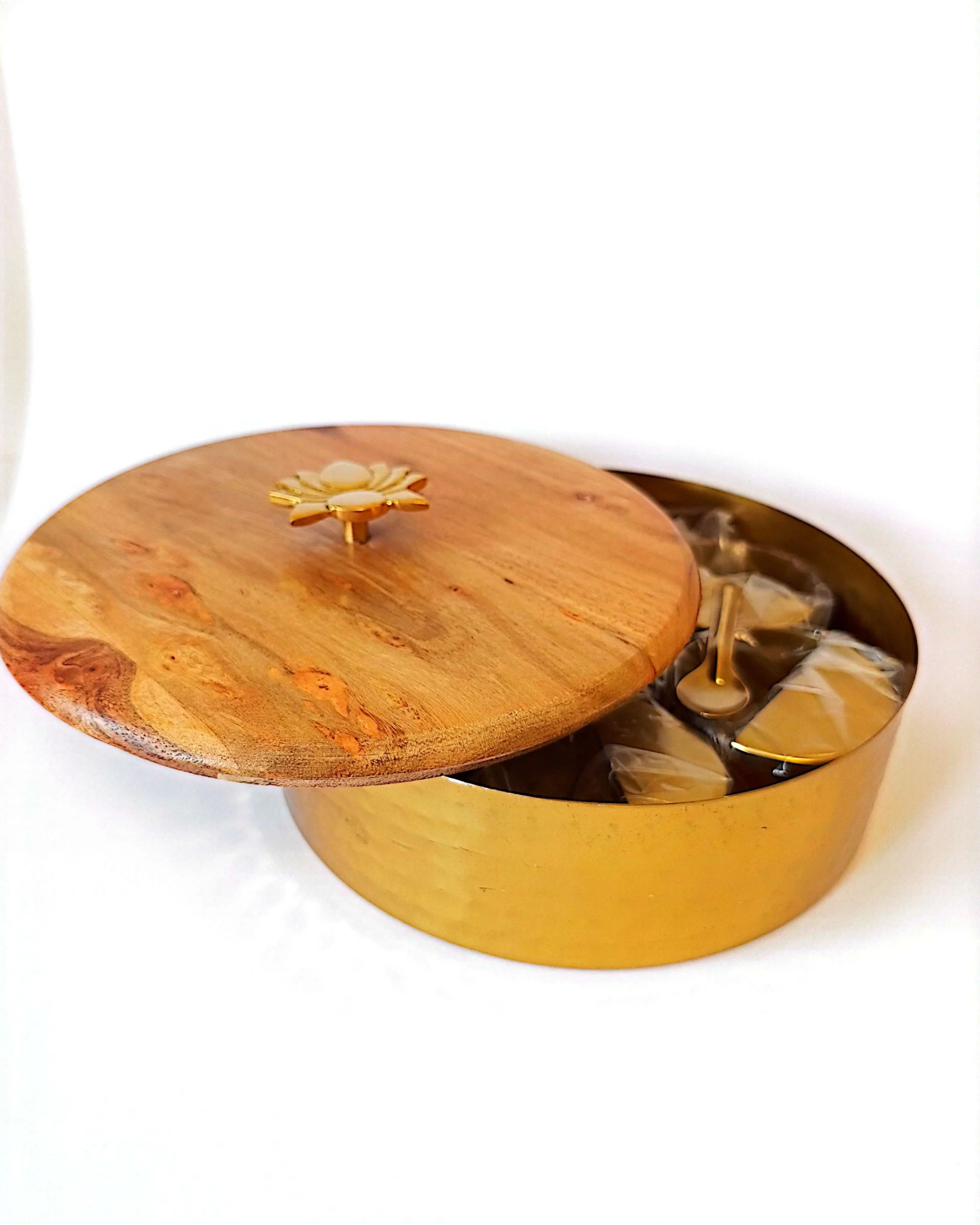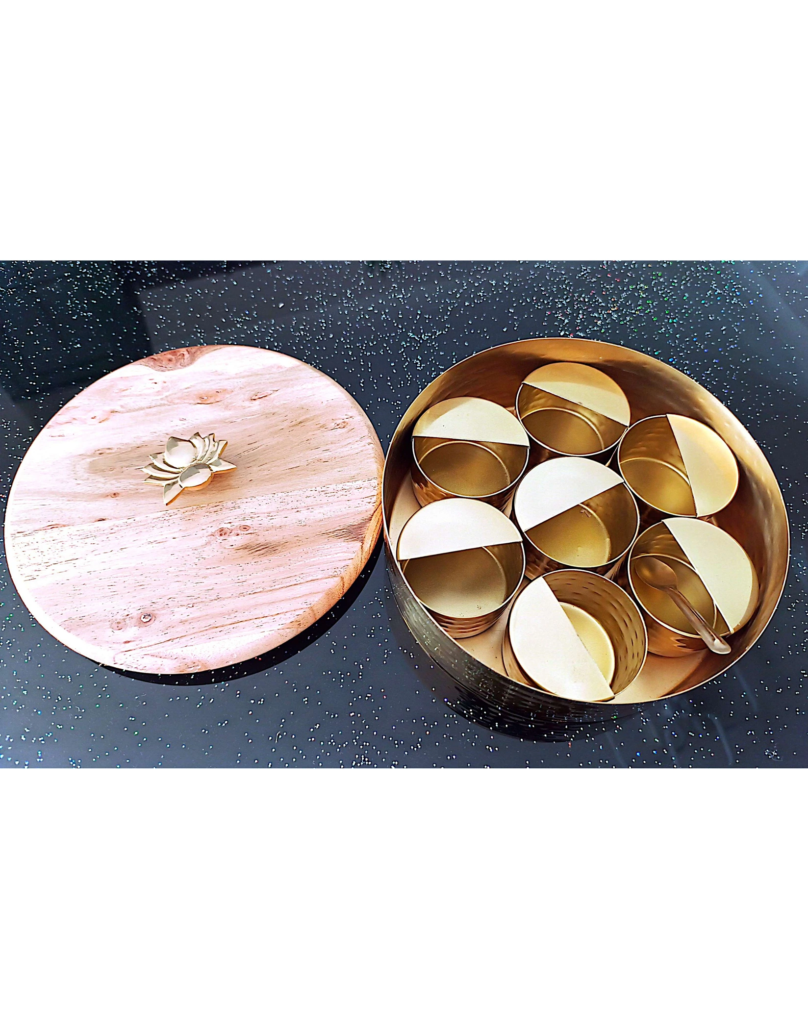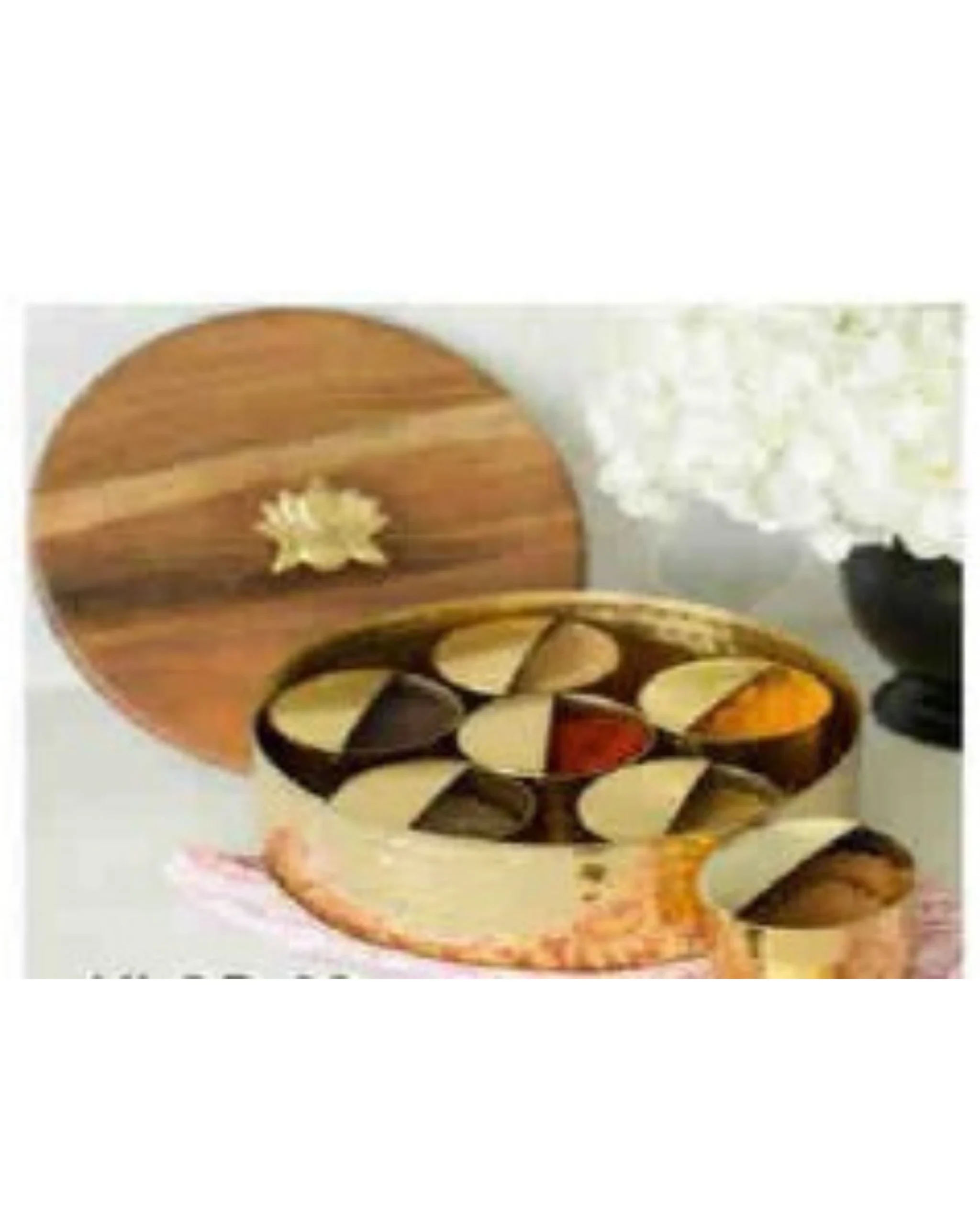 Authentic Spice Masala Box with Wooden Lotus Lid