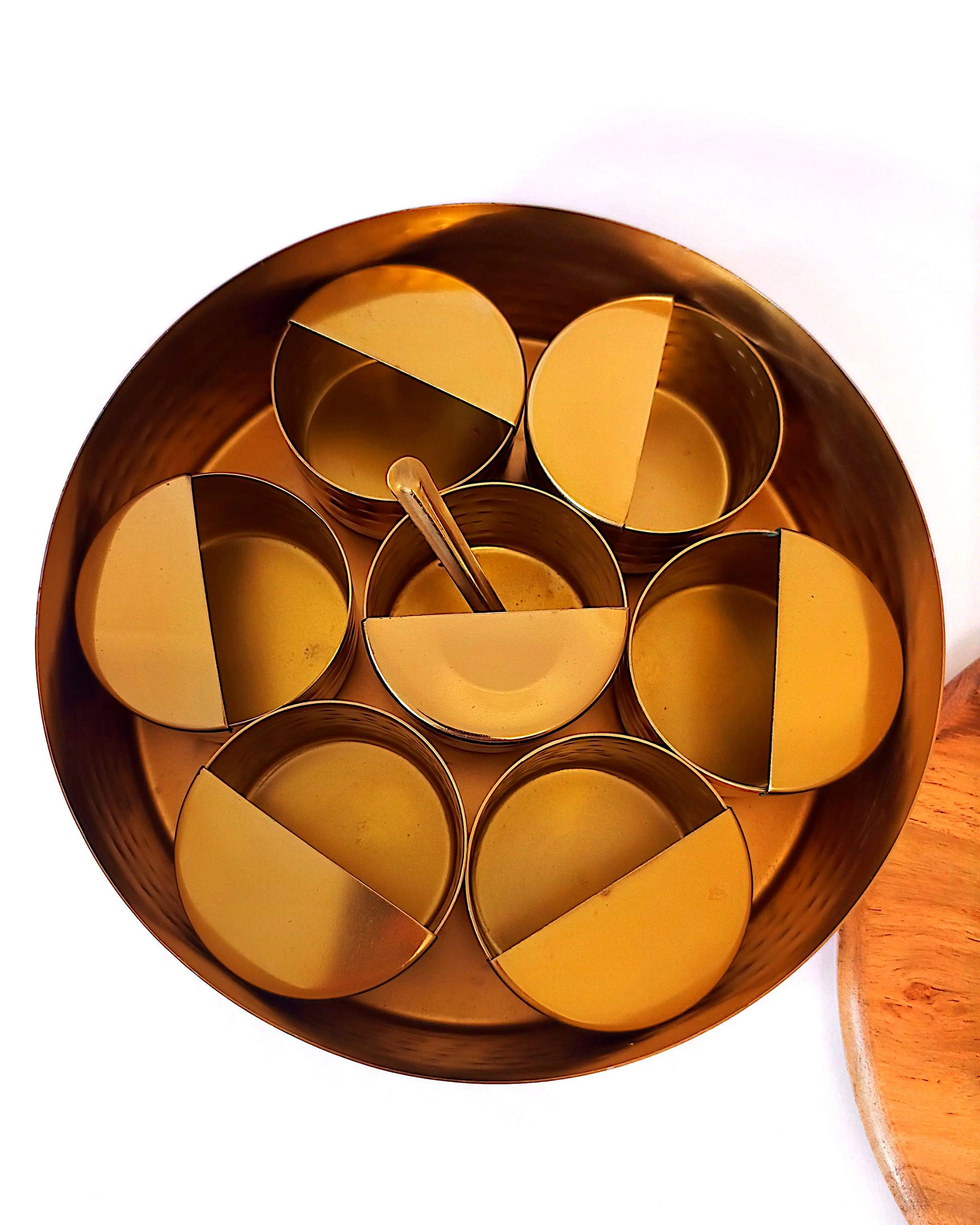 Authentic Spice Masala Box with Wooden Lotus Lid & seven containers – For every Kitchen
