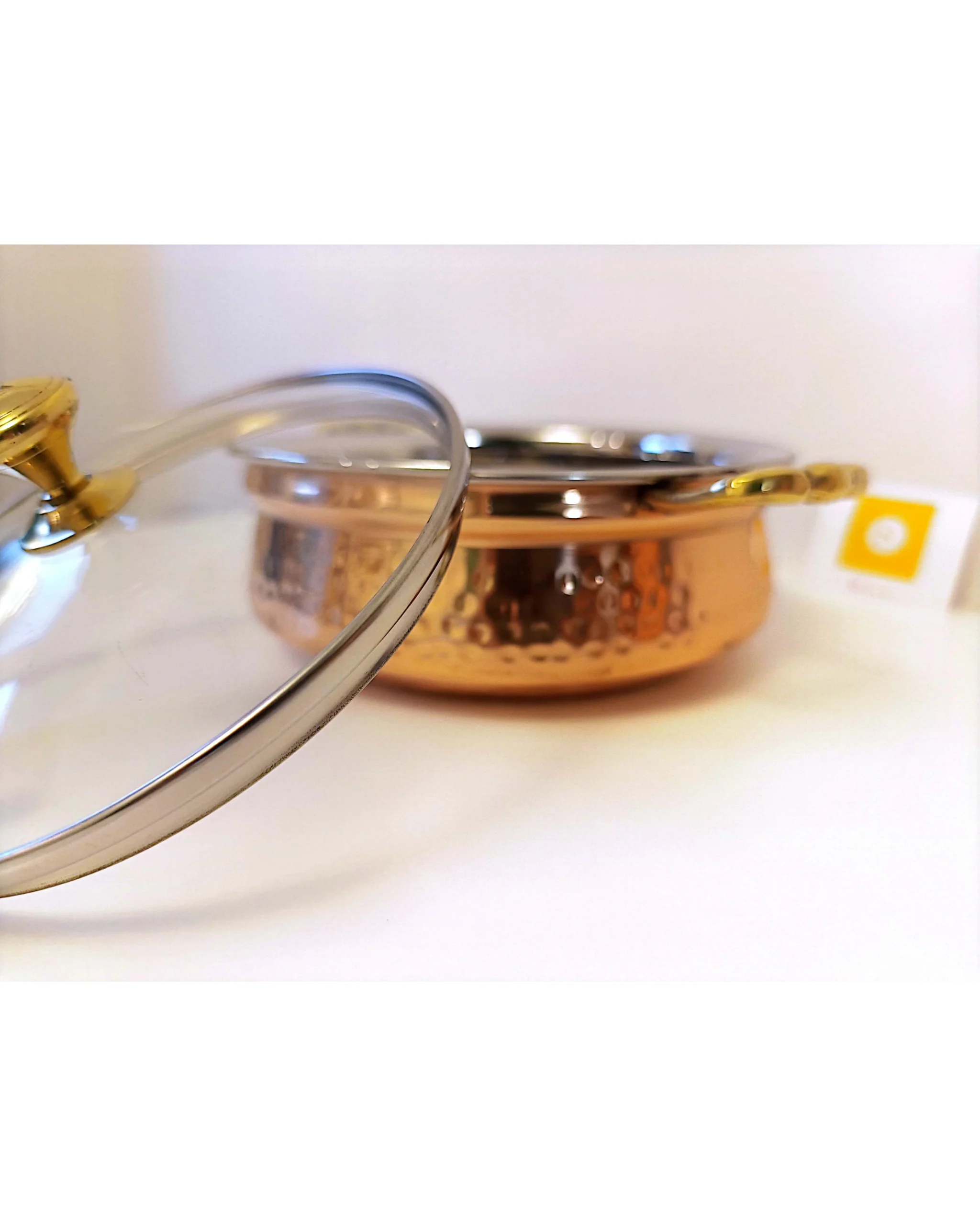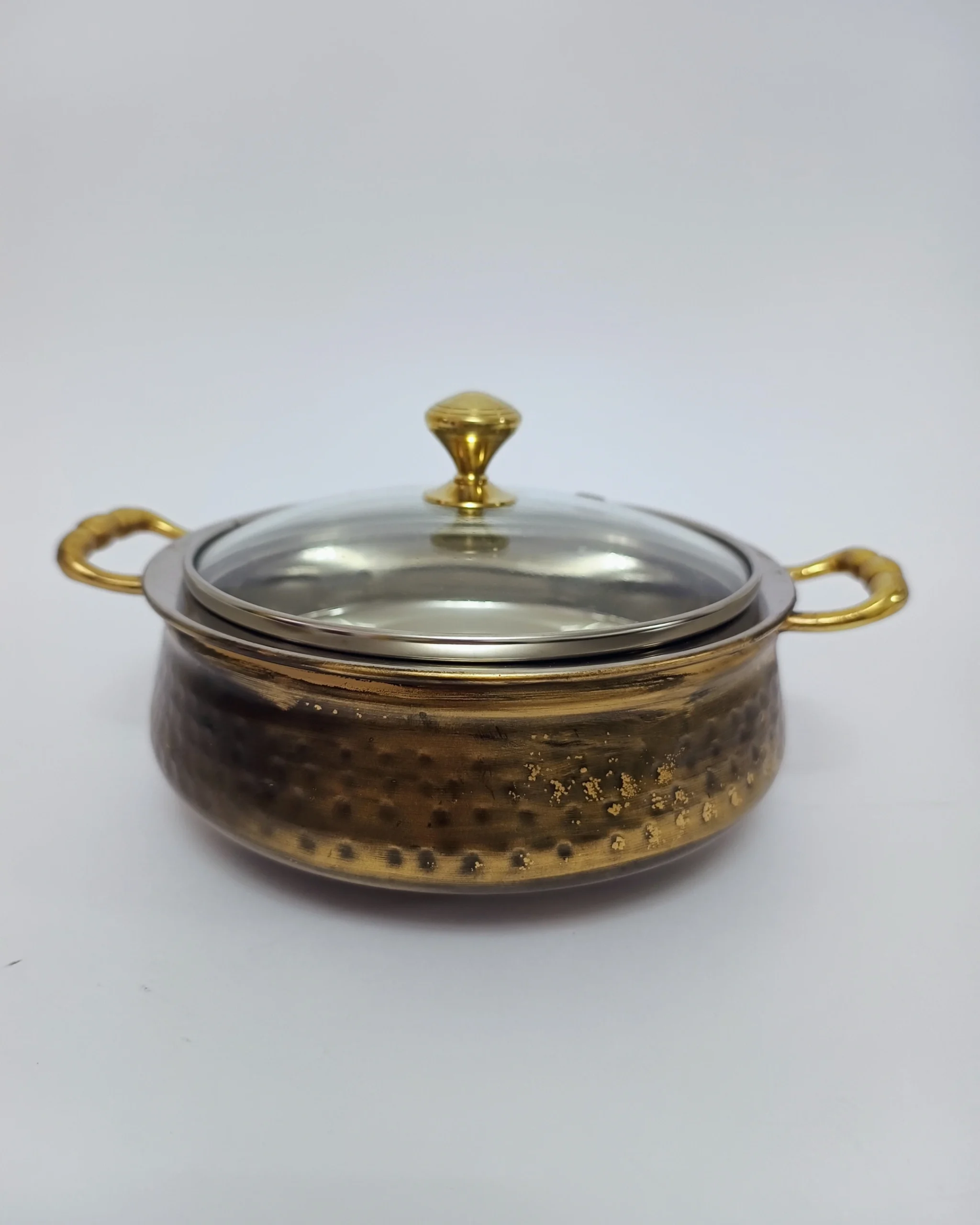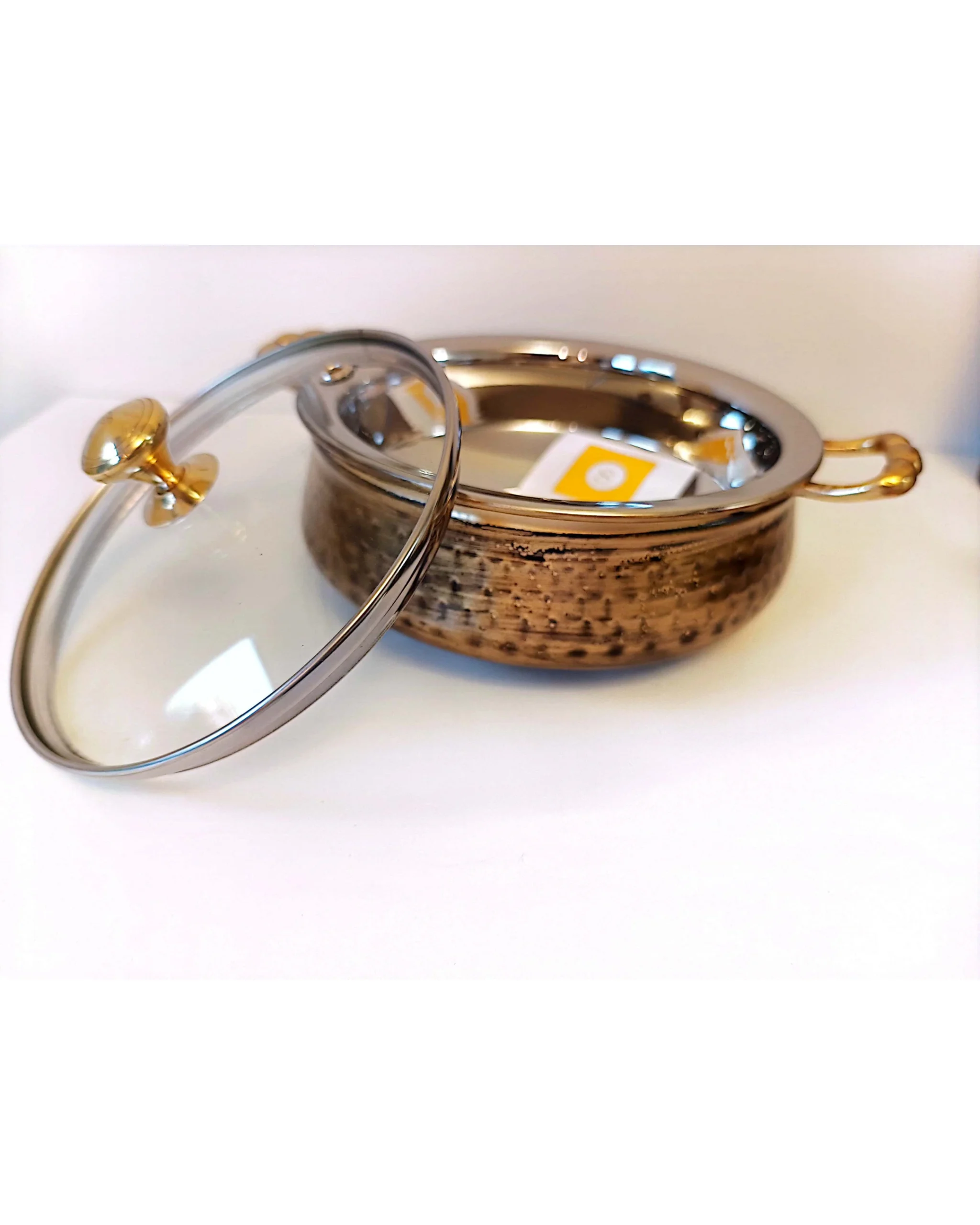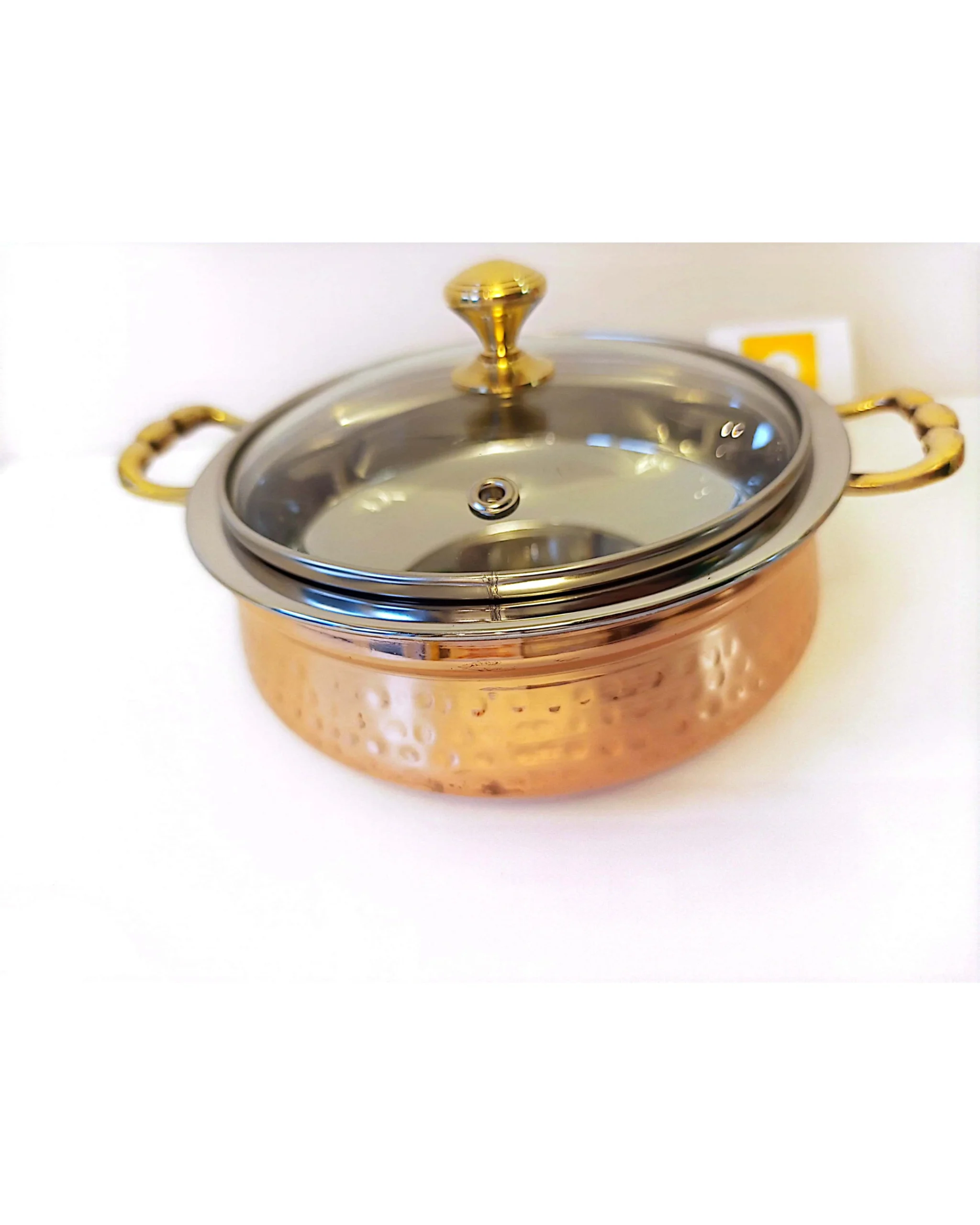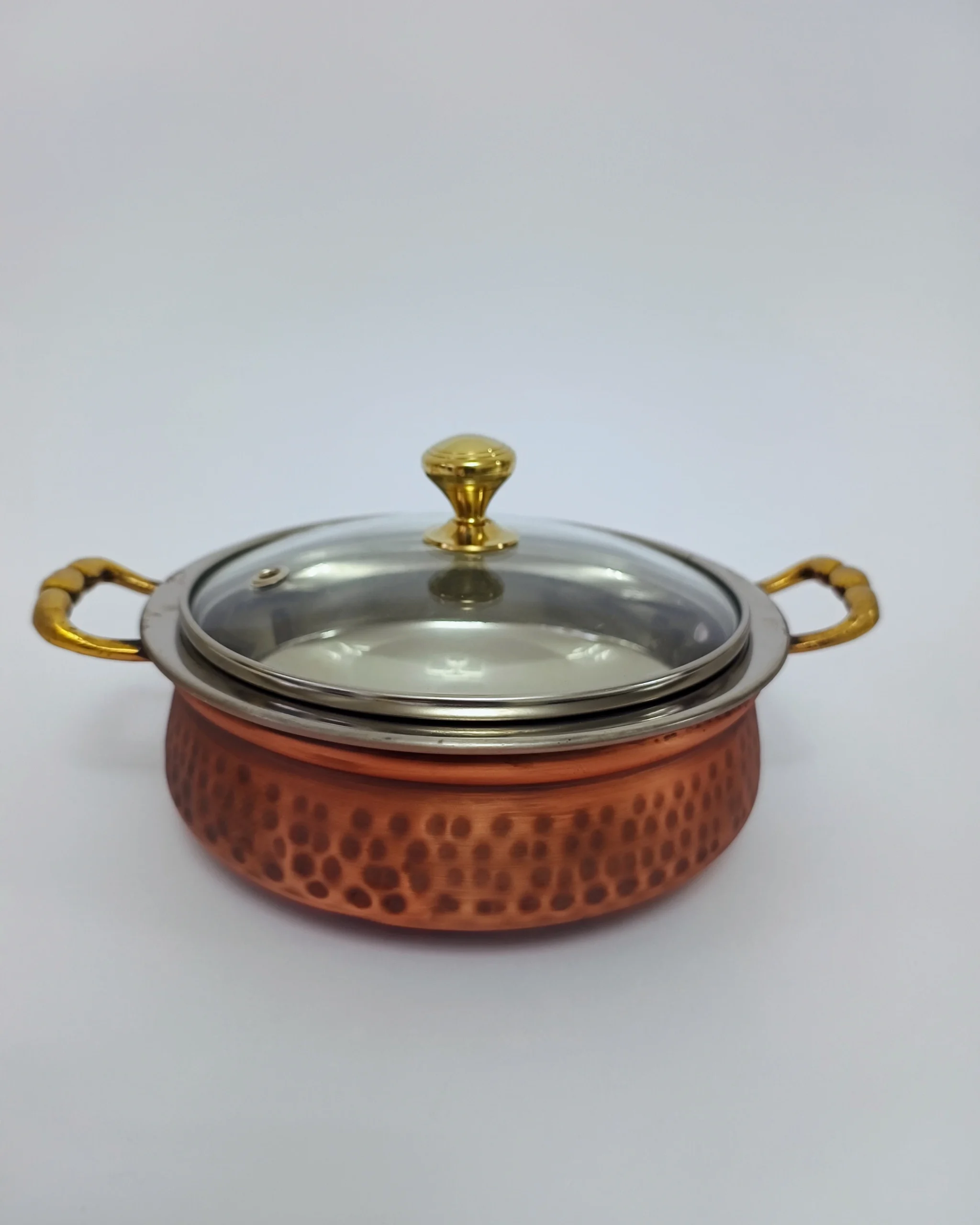 1 x Royal Copper Handi/ casserole with a glass lid for keeping food warm and visible.