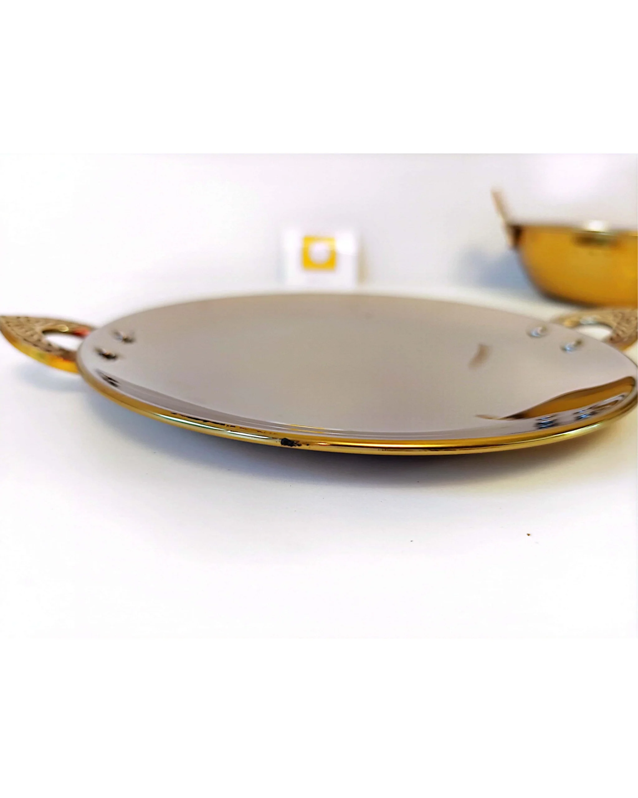 1 x Copper Tawa/ platter with detailed handles for appetizers or bread.